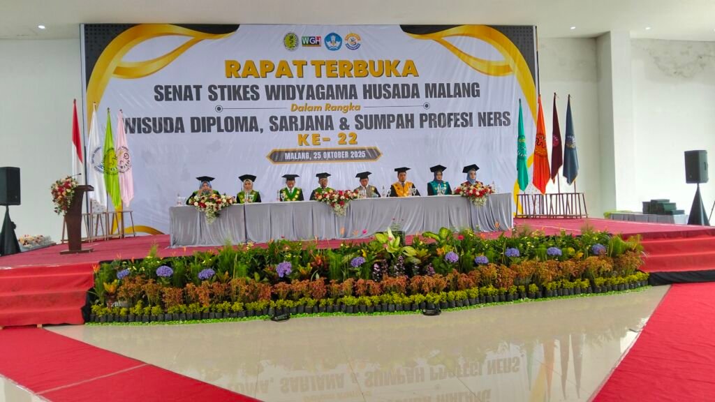 Hari ini Sabtu, 25 Oktober 2025 Sekolah Tinggi Ilmu Kesehatan (STIKES) Widyagama Husada Malang menggelar wisuda ke 22 dan sumpah profesi Ners tahun Akademi 2024/2025, acara wisuda dan sumpah profesi ke 13 dilaksanakan di Hall lantai 5 Kampus 2 Universitas Widyagama Malang jalan Borobudur 35 Malang.